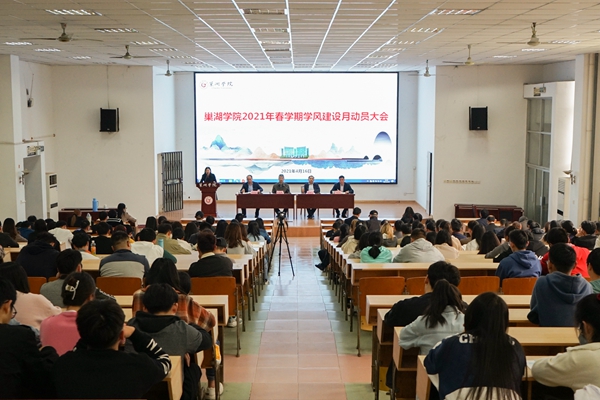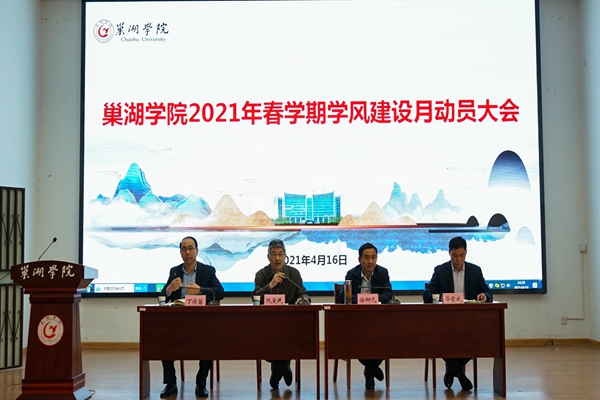 為進一步鞏固“三全育人”綜合改革成效,提高“五育并舉”水平,推動優良學風建設,4月16日下午,巢湖學院在求實樓報告廳召開2021年春學期學風建設月動員大會。校黨委副書記阮愛民,副校長徐柳凡出席會議。有關部門負責人,各學院分黨委書記、副書記,副院長,全體專兼職輔導員和學生代表參加了會議。會議由阮愛民主持。