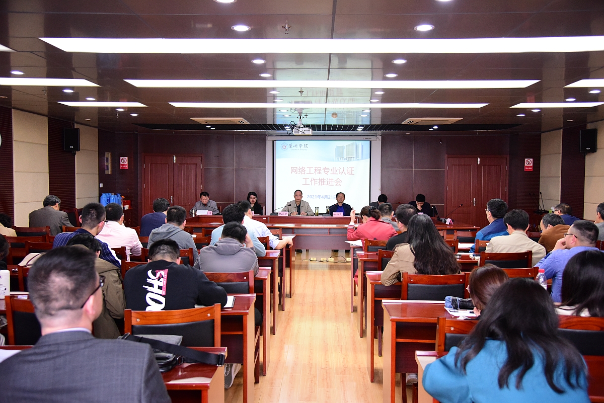 4月21日下午,學校在第二會議室召開網絡工程專業認證工作推進會。校長祝家貴,副校長徐柳凡、朱定秀出席會議。信息工程學院黨政負責人,馬克思主義學院負責人,網絡工程專業教研室主任、專業教師、公共課教師及其教研室主任,相關職能部門主要負責人,教務處、發規處相關人員參加會議。會議由徐柳凡主持。