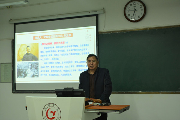 活動中,朱玉票領(lǐng)讀了陳寅恪先生題寫的王國維紀(jì)念碑銘,“惟此獨立之精神,自由之思想,歷千萬祀,與天壤而同久,共三光而永光。”氣宇軒昂,振奮人心,并鼓勵同學(xué)們保持獨立的人格和思想,踏踏實實求知問學(xué);學(xué)院易班工作分站張繁同學(xué)分享了馬爾克斯《百年孤獨》中的精彩片段,結(jié)合書中經(jīng)典名句“百年一參透,百年一孤獨”,解讀了自己對“孤獨”的理解,讓思想與哲理碰撞;20級漢語言文學(xué)1班陳薇同學(xué)推薦了四大名著之一《紅樓夢》,通過生動的朗讀、深入淺出的剖析讓書中人物形象栩栩如生地展現(xiàn)在同學(xué)們面前,共同領(lǐng)略文化經(jīng)典的魅力;王思慧同學(xué)朗誦了魯迅先生的《吶喊》,感受在腐朽思想籠罩下爆發(fā)出的吶喊之力、覺醒之力;夏麗雯同學(xué)領(lǐng)讀了余秋雨先生的《文化苦旅》,在華彩明麗的詞藻中體會歷史的重量,獲取靈魂的洗禮與思想的升華。