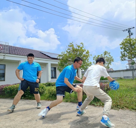 體育課的內(nèi)容是足球和籃球,頂著高溫酷暑的天氣,汗水挨著兩鬢,孩子們?nèi)曰盍M滿,對(duì)運(yùn)動(dòng)的熱情絲毫沒(méi)有減少。雖然他們年齡較小,個(gè)頭不高,但身體健康行動(dòng)矯健,非常靈活。兩位成員認(rèn)真講述拍球、運(yùn)球技巧,拉球、腳踩球的動(dòng)作練習(xí),球在他們的手腳間翻滾、跳躍,他們仔細(xì)聽(tīng)成員們的講解,認(rèn)真地練習(xí)這些動(dòng)作。成員們不停夸贊孩子們準(zhǔn)確性、協(xié)調(diào)性,鼓勵(lì)他們多加練習(xí),讓運(yùn)動(dòng)成為一項(xiàng)熱愛(ài),一種習(xí)慣。