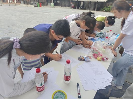 在三河古鎮(zhèn)萬年臺,實踐團以填寫校園霸凌和安全自護問卷的方式,現(xiàn)場開展普法宣傳,幫助小學生們樹立法律意識和安全意識,培養(yǎng)法治思想、培育法治精神。實踐團成員還向三河古鎮(zhèn)的兒童發(fā)放“夏季防溺水”宣傳單,有針對性地開展了防溺水安全教育小課堂活動,普及防溺水知識和相關自救措施,提高兒童自我保護意識。