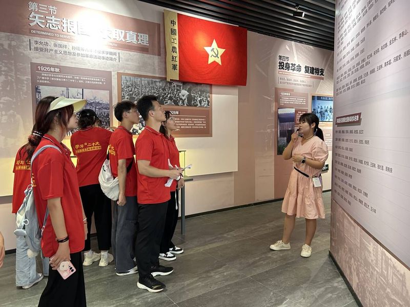 精準(zhǔn)對(duì)接,實(shí)地訪談。在出發(fā)前,石林再次明確人員分工并安排行程,鼓勵(lì)成員們?cè)谡{(diào)研途中積極發(fā)揮自身作用,為此次宣講活動(dòng)作出貢獻(xiàn)。為使團(tuán)隊(duì)成員了解郎溪抗戰(zhàn)歷史,在石林的帶領(lǐng)下,實(shí)踐團(tuán)隊(duì)依次前往姚村蘇維埃遺址、黨性教育館、夏雨初烈士陵園、沙橋支部舊址、養(yǎng)心谷博物館進(jìn)行了從7月2日至7月8日為期七天的參觀調(diào)研。教育館等地分別用不同呈現(xiàn)方式記載著中共郎溪縣地方黨組織的建立與斗爭史、郎溪縣革命運(yùn)動(dòng)中的革命先輩的偉大事跡等內(nèi)容。艱難竭蹶、風(fēng)雨飄搖,以夏雨初同志為代表的革命烈士矢志不渝、初心不改,在革命的道路上卻從未想過放棄。在這個(gè)過程中,實(shí)踐團(tuán)隊(duì)學(xué)習(xí)了以烈士夏雨初為代表的“雨人”精神和“雨初”精神,體會(huì)到在抗戰(zhàn)時(shí)期先烈們?yōu)楦锩鼊倮晃飞赖挠職馀c力量,并學(xué)習(xí)了以李允功、劉珍英等六人為代表的沙橋革命精神,認(rèn)識(shí)到無論目標(biāo)有多么艱難,女性的力量也從未使人遺忘。成員們更是在講解中回顧了郎溪抗戰(zhàn)歷史,對(duì)郎溪黨史有了整體認(rèn)識(shí),先烈無私無畏、英勇頑強(qiáng)的革命精神得以世人銘記與傳承。如今,雖沒有槍林彈雨、血染山河,但先烈的英勇事跡、不屈的斗爭精神仍需牢記于心,代代相傳。為知曉當(dāng)?shù)鼐用駥?duì)郎溪革命歷史的了解程度,實(shí)踐團(tuán)隊(duì)在郎溪中學(xué)附近對(duì)不同年齡段的群眾進(jìn)行采訪。采訪過程雙方交談融洽,青年在采訪中表示會(huì)積極參與到郎溪黨史宣傳,老年人則表示會(huì)將郎溪革命故事代代相傳,使后代子孫不忘初心,銘記歷史。