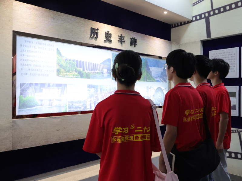 7月5日,小隊前往佛子嶺水庫大壩進行考察,水庫管理處的干事吳靖向隊員們介紹了大壩的管理和維護情況。佛子嶺水庫1954年建成,至今仍然在農業灌溉、防汛抗洪、水力發電等方面發揮重要作用,站在巍峨的大壩頂端,隊員們由衷贊嘆老一輩工程建設者們克服千難萬阻建成“新中國第一壩”的豐功偉績,也對現在的管理者們科學統籌、精心維護,讓大壩始終保持良好狀態感到敬佩。