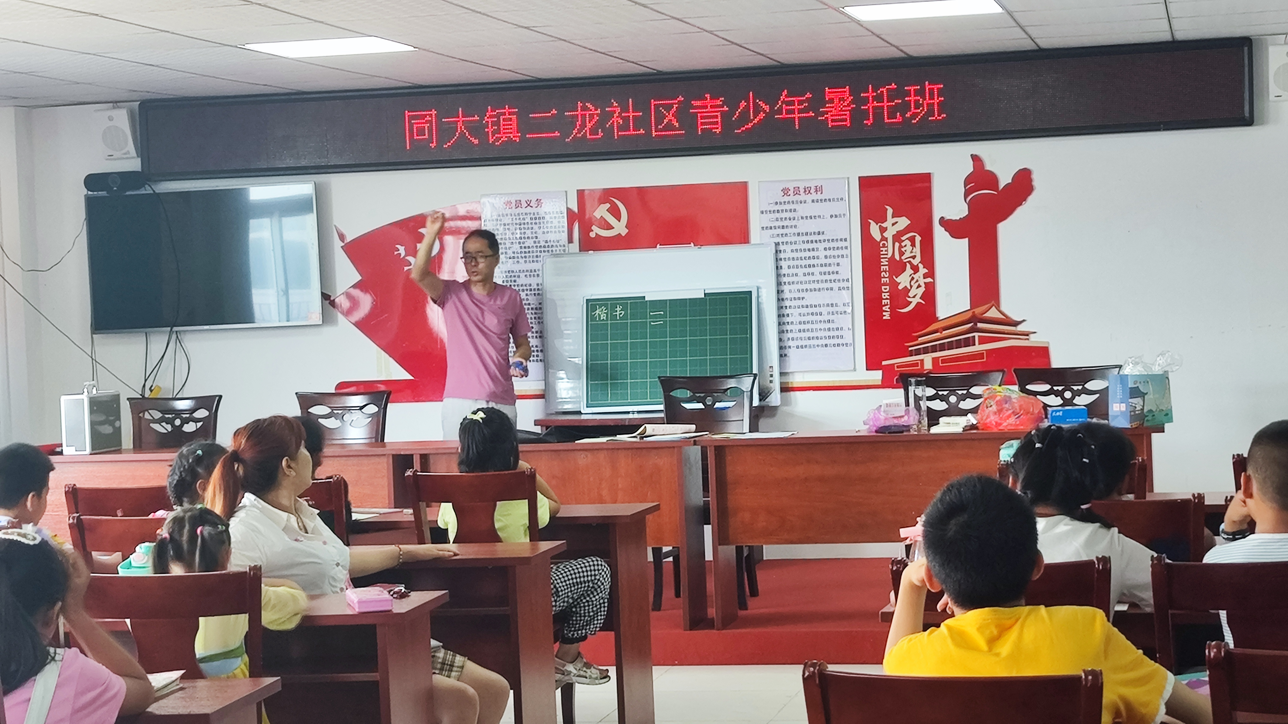 同大鎮暑托班設置在村(社區)新時代文明實踐站,結合農家書屋資源,針對小學生、初中生提供學業指導、閱讀輔導、興趣培養等服務。實踐團隊對孩子們的作業問題進行耐心解答,悉心指導,課堂之余引導孩子們在文明實踐站借閱書籍,開展讀書會分享讀書心得,鼓勵孩子們講述自己的閱讀體驗、分享書中的精彩片段以及對所讀書籍的評價,拓展孩子們的知識視野、激發閱讀興趣和引導他們學會思考。