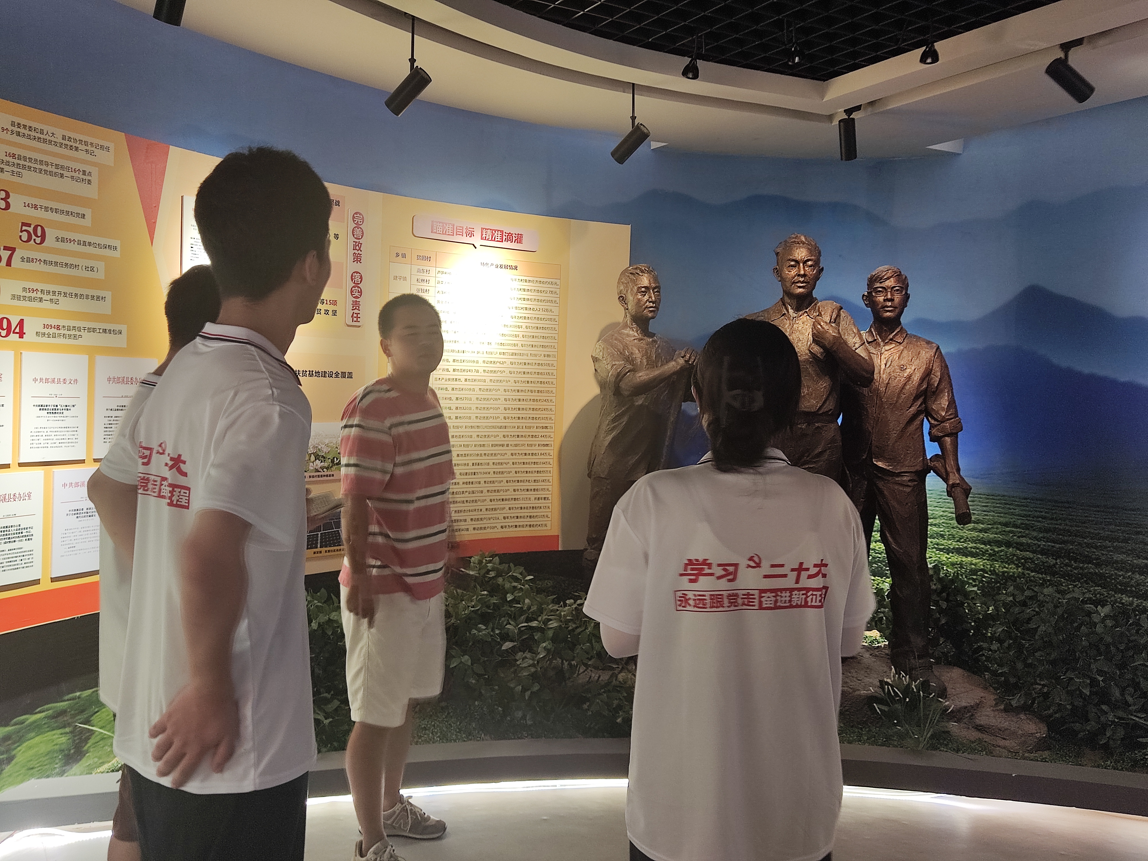 7月2日,尋訪團來到了位于凌笪鄉下吳村的宣城市記錄小康工程展館,鄉村振興工作不僅要做好脫貧攻堅成果鞏固,更要在防返貧上下功夫。在村干部王鵬主任的帶領下,實踐團參觀了展館。通過一篇篇文字、一組組數據、一張張圖片讓大家深刻感受到了在黨的領導下,在實施鄉村振興戰略的背景下下吳村的脫貧攻堅歷程。現如今,下吳村通過充分發揮區位及生態資源優勢,尋求新的發展空間、學習先進理念、復制先進技術、引進先進方法,大力發展茶葉種植生產,走穩振興路。