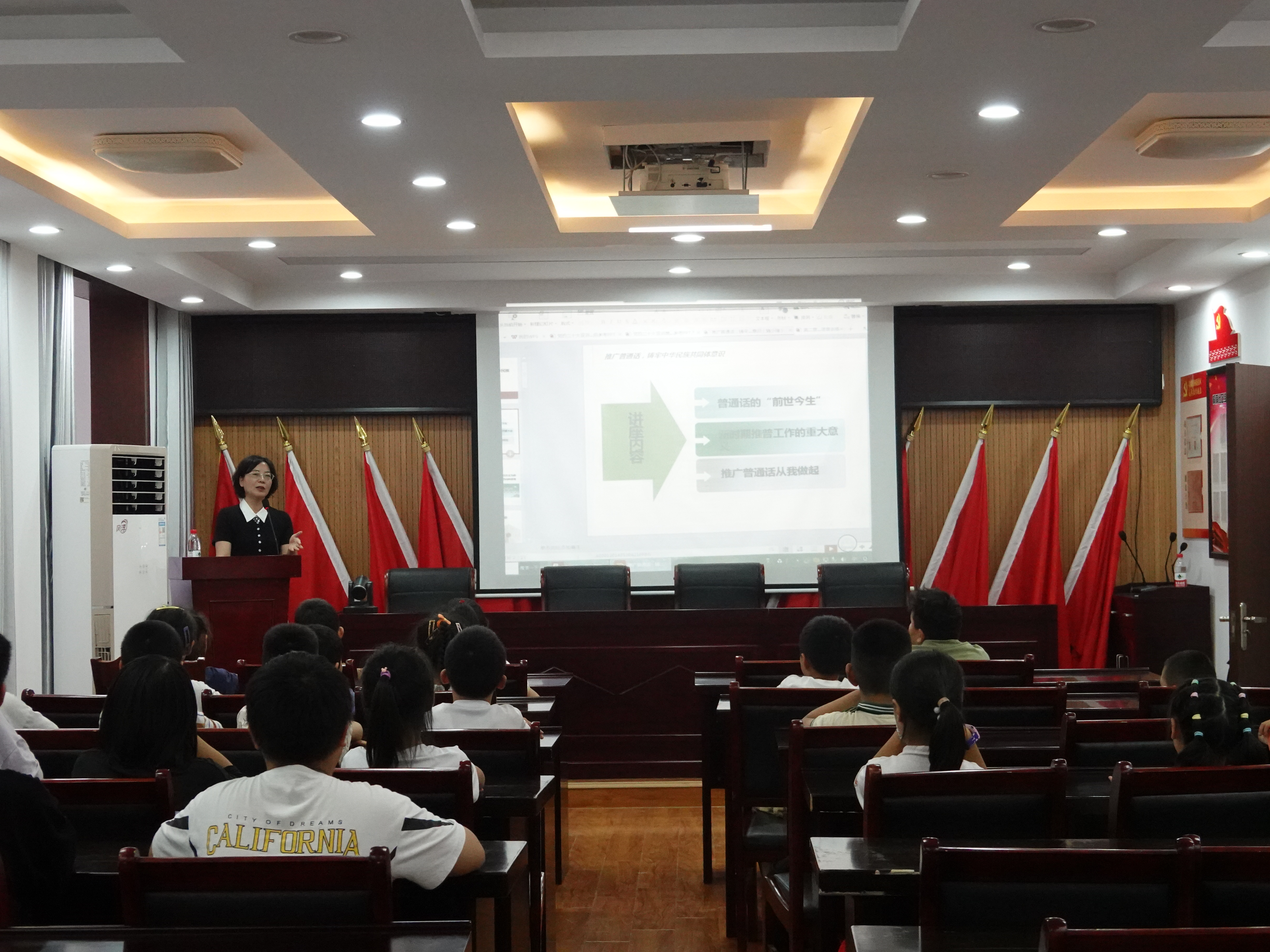 7月20日,實踐團隊邀請安徽省普通話測試員施小瓊老師在黃麓鎮開展“推廣普通話,鑄牢中華民族共同體意識”主題講座。講座以“什么是普通話”“為什么要學習普通話”和“怎樣學好普通話”三個問題貫穿。解釋了普通話的概念和新時代推廣普通話的重大意義。講座中,施小瓊列舉了生動巢湖方言的例子,如“不稱朗”、“照嘎”、“六谷”等詞匯比較與普通話的區別。講座中,穿插著同音詞辨析、古詩朗誦和繞口令等趣味互動游戲,鍛煉小朋友們語言表達和使用普通話的能力。講座在高聲齊誦《七律·長征》中結束。