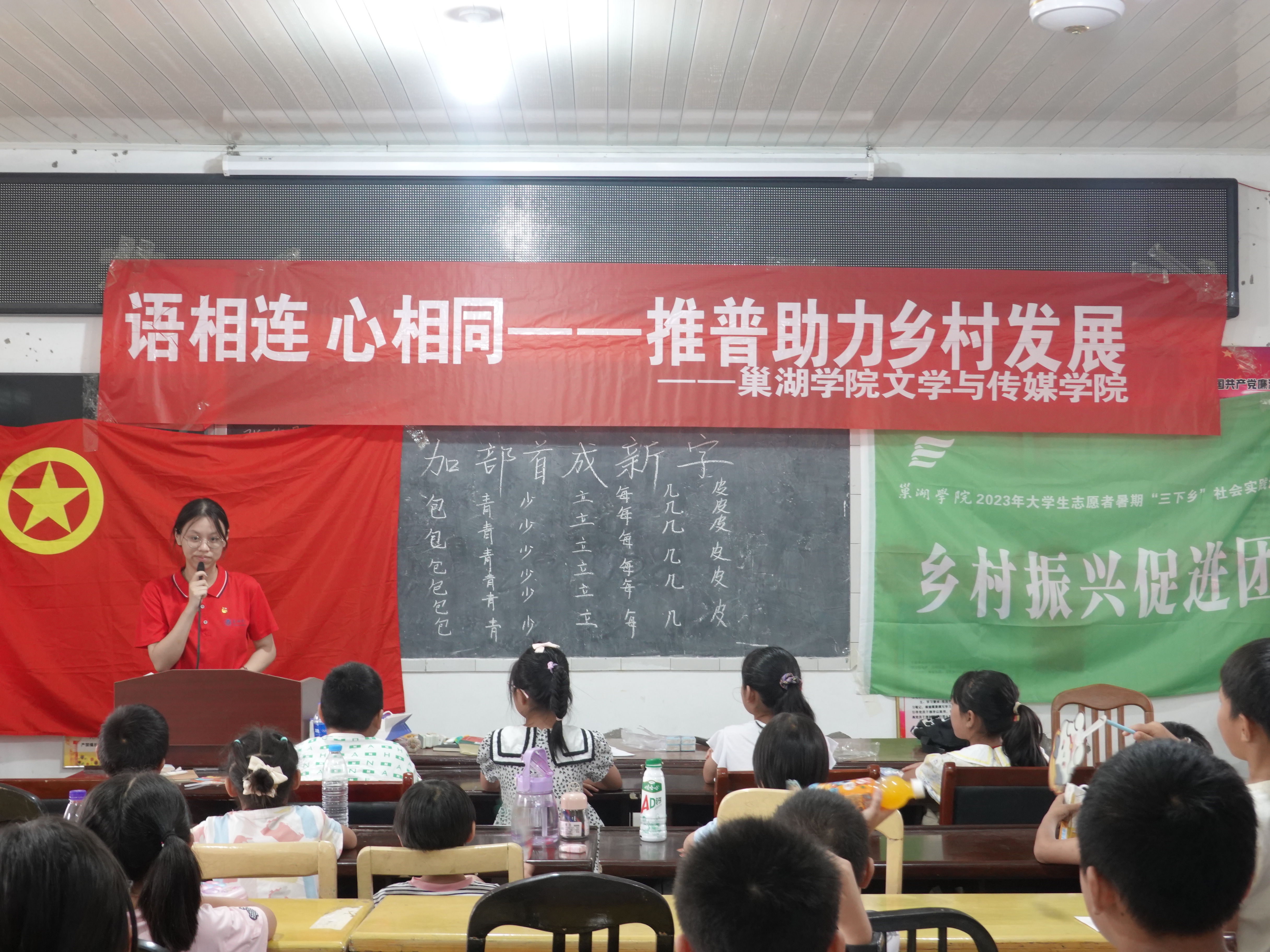 為推進國家通用語言文字普及,助力鄉村振興,7月14日至20日,巢湖學院文學與傳媒學院“語相連,心相同推普助力鄉村發展”實踐團前往巢湖市黃麓鎮開展為期一周的暑期社會實踐活動。