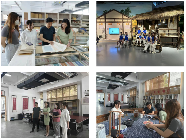 7月1日至5日,團隊成員來到半湯溫泉度假區,參觀了二十四節氣館,在農場體驗了采摘、垂釣等活動,并開展了助農直播。7月6日至10日,團隊赴柘皋鎮體驗當地風俗文化,品嘗了有名的柘皋早茶,在柘皋老街觀賞彩陶、樹雕畫、紙箋加工技藝等非物質文化遺產,在觀賞和體驗匯總中感受到非遺的文化魅力。團隊成員還參觀了柘皋巢北抗日基地,在講解員的介紹下重溫巢湖地區抗戰的光輝歷史。7月11日至15日團隊到黃麓鎮張治中故居、厵村、掇英軒(非遺紙箋加工基地)開展調研。
