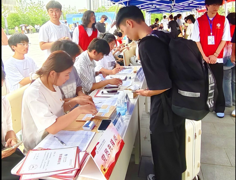 迎新現場熱情洋溢,黨員先鋒崗靠前服務,現場解答新生的疑問,用熱情服務為新生順利報到保駕護航;新生班助及志愿者隊伍為新生提供“一站式服務”,協助完成身份核驗、一卡通領取、宿舍入住、公寓用品領取等手續。與此同時,新生輔導員同步開展防詐騙與安全教育宣傳,以“一對一”的貼心陪伴,為新生和家長帶來難忘而溫暖的“化材初體驗”。