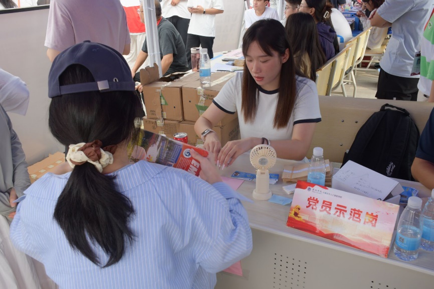 計算機與人工智能學院的報到處前人頭攢動,新生們懷揣著對智能科技領域的向往,在工作人員指引下有序完成信息核驗,即將開啟專業探索之旅。工作人員提前備好入學資料袋,細致講解專業學習方向,為新生勾勒大學成長藍圖。現場設置的“黨員示范崗”更是成為暖心標桿,黨員老師與學生志愿者堅守崗位,細致辦理入學手續。警察同志為提高新生的反詐能力對他們進行耐心地講解,全體老師、志愿者們均以飽滿的熱情投入迎新工作之中。