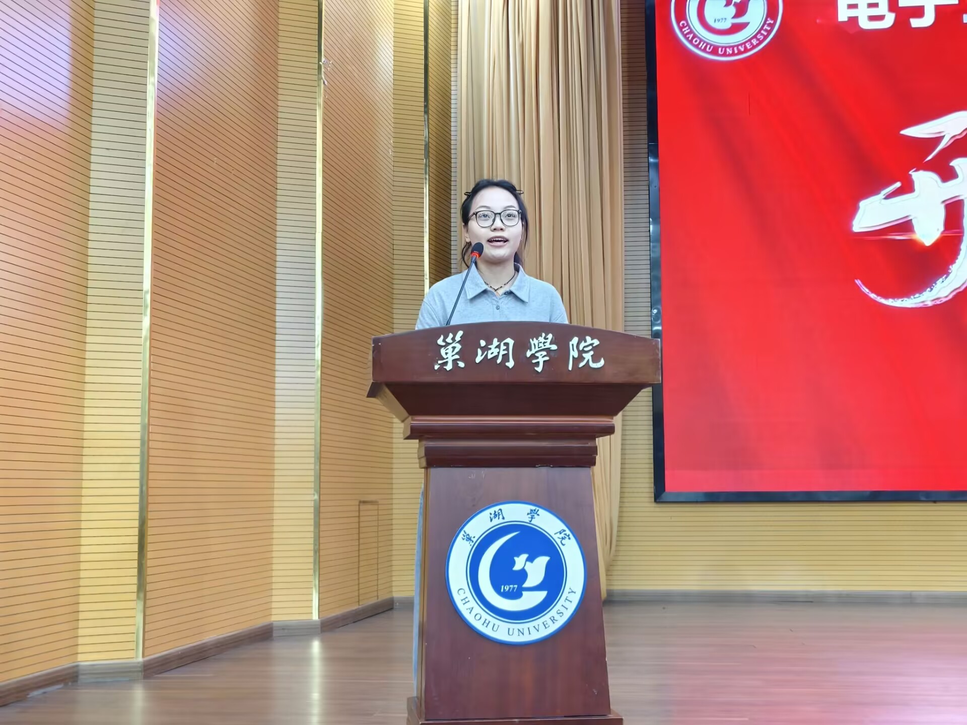 2024級電子科學與技術專業王子潔作為老生代表發言,她結合自身的學習經歷,分享了從大一新生到老生的成長歷程,鼓勵新生們積極適應大學生活,主動參與學術研討和社團活動,培養團隊協作能力。