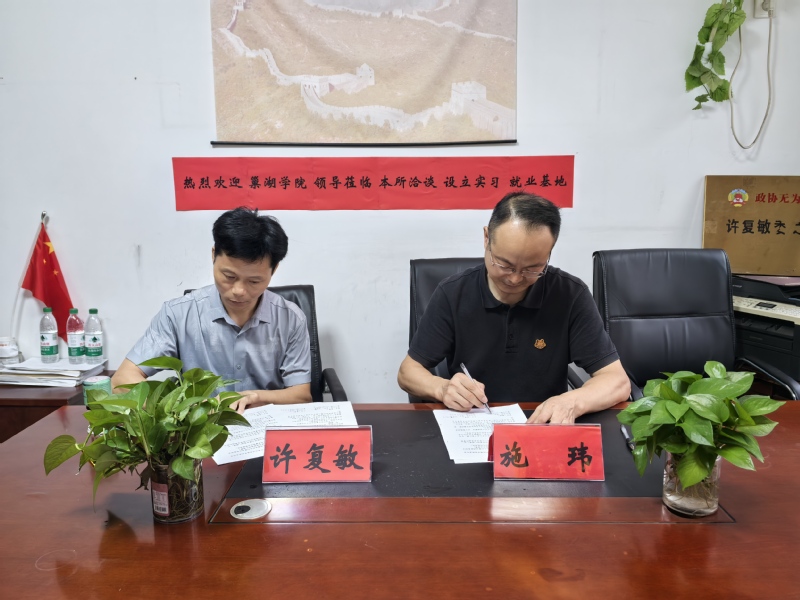會后,施瑋與許復(fù)敏簽訂實習(xí)就業(yè)基地建設(shè)合作協(xié)議書,共同為“巢湖學(xué)院實習(xí)就業(yè)基地”揭牌。