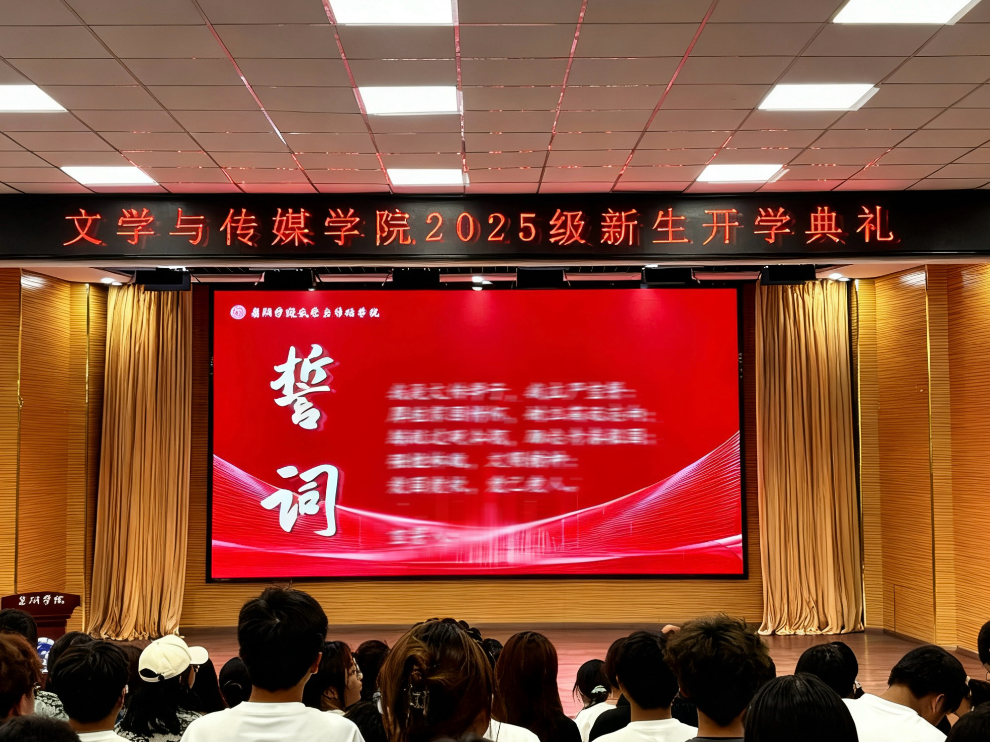 文學(xué)與傳媒學(xué)院2025級(jí)新生開(kāi)學(xué)典禮在莊嚴(yán)的國(guó)歌聲中正式拉開(kāi)帷幕。
