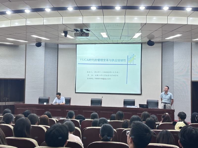 為幫助學子深入理解時代變革、前瞻未來行業發展趨勢,提升在復雜環境下的專業認知與職業規劃能力,2025年9月18日,工商管理學院邀請安徽工程大學經濟與管理學院院長龔本剛教授,為同學們帶來了一場題為“VUCA時代與供應鏈韌性”的專題講座。活動由工商管理學院院長陶有田主持,學院200余名學生參加了報告會。
