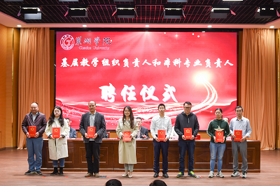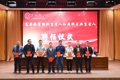 會議分兩個階段進行。第一階段為基層教學組織負責人和本科專業負責人聘任儀式。會上,朱定秀結合教學管理體制改革和本科專業建設,介紹了本次兩類負責人選聘工作開展情況,并就做好后續教學管理和建設等提出了要求。張莉宣讀了學校基層教學組織設置以及基層教學組織負責人聘任、本科專業負責人聘任文件。隨后,校領導為受聘的各基層教學組織負責人和本科專業負責人頒發了聘書。