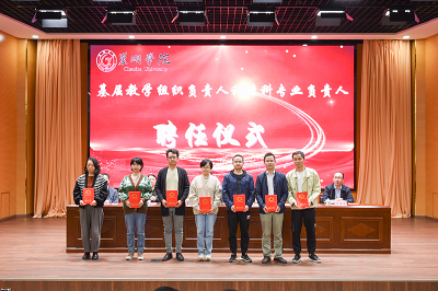 會議分兩個階段進行。第一階段為基層教學組織負責人和本科專業負責人聘任儀式。會上,朱定秀結合教學管理體制改革和本科專業建設,介紹了本次兩類負責人選聘工作開展情況,并就做好后續教學管理和建設等提出了要求。張莉宣讀了學校基層教學組織設置以及基層教學組織負責人聘任、本科專業負責人聘任文件。隨后,校領導為受聘的各基層教學組織負責人和本科專業負責人頒發了聘書。
