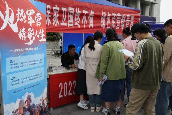 服務國家戰略之需,高效推進征兵工作。把征兵工作納入學校就業工作考核,推進“兩站兩服務”平臺建設,舉辦入伍政策宣講會,以“大學生國防教育協會”“國防教育班”等為載體,凝聚參軍報國青年力量,培養入伍光榮的參軍氛圍,舉辦大學生征兵宣傳素材設計大賽,把征兵宣傳咨詢臺搬進招聘會現場,做到政策解讀到位、咨詢服務到位、關心關懷到位,激發學生參軍熱情,全方位、全流程服務畢業生參軍報國,實現個人理想抱負。畢業生上半年應征入伍16人,秋季征兵報名熱情高漲。