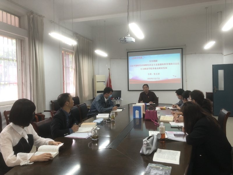 接著,朱玉票就“如何結合學院事業發展和工作實際,真正做到牢牢把握習近平新時代中國特色社會主義思想的世界觀和方法論”展開論述。習近平新時代中國特色社會主義思想,是21世紀馬克思主義、當代中國馬克思主義,是馬克思主義中國化時代化最新成果,深刻揭示了新時代中國特色社會主義的本質特征、發展規律和建設路徑,為在新的時代條件下堅持和發展中國特色社會主義提供了科學的理論指引。我們要深刻理解其系統全面、邏輯嚴密、內涵豐富、內在統一、不斷發展的科學理論體系,內化于心,外化于行,自覺做習近平新時代中國特色社會主義思想的堅定信仰者和忠實實踐者,以實際行動不斷譜寫馬克思主義中國化時代化新篇章。