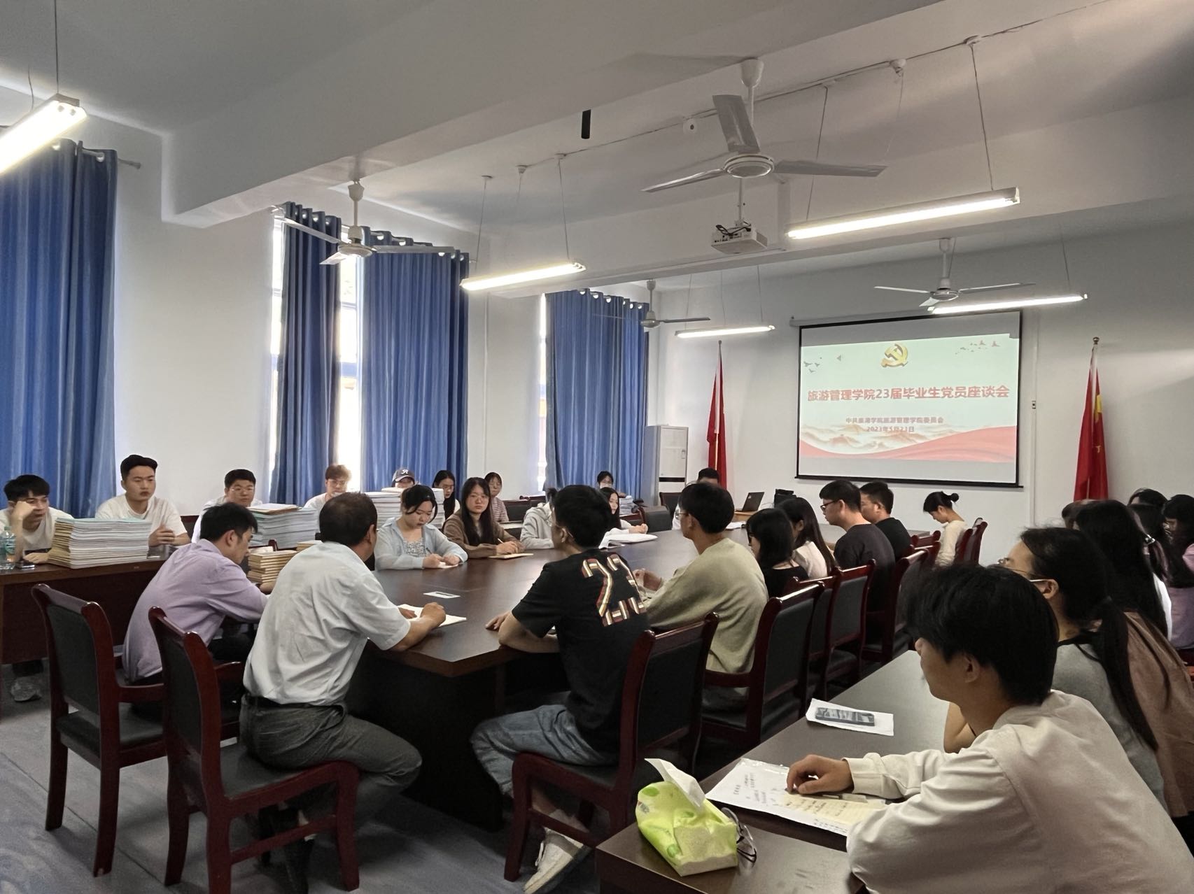 5月23日,旅游管理學院黨委在明德樓黨員活動室開展2023屆畢業生黨員離校教育。院黨委主要負責人洪作奎、院黨委副書記鄧其志、學生支部書記馬其霞、曾鵬、黃維兵和畢業生黨員代表參加會議。