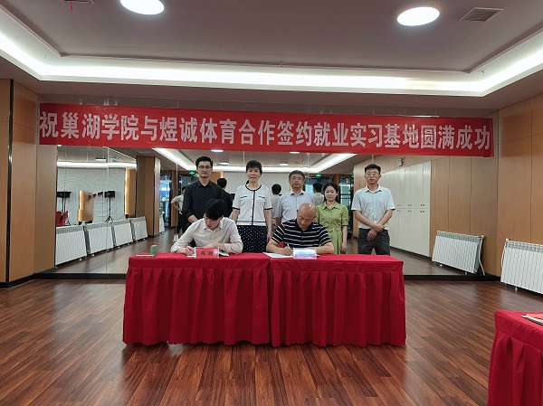 趙勝國代表體育學院與安徽煜誠體育健身有限公司簽訂了“巢湖學院就業基地”合作協議書,并一同舉行了授牌儀式。