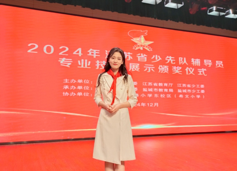 宋佳在2024年江蘇省少先隊輔導(dǎo)員專業(yè)技能展示活動的“黨的創(chuàng)新理論宣講”項目中獲得特等獎,并在頒獎活動中作為宣講項目中的唯一選手面向全省骨干輔導(dǎo)員作現(xiàn)場展示。