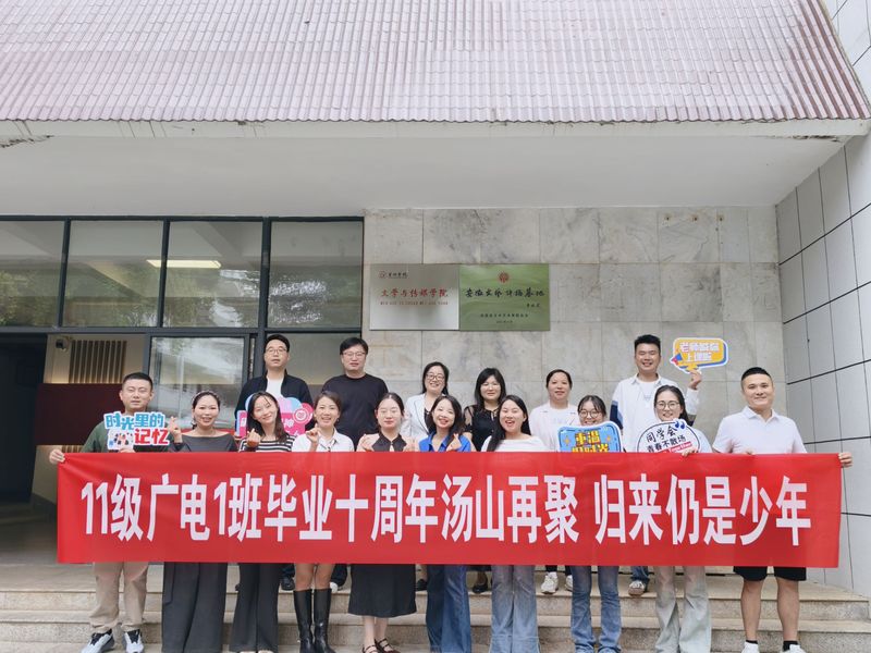 10月12日,文學與傳媒學院2011級廣播與電視學專業1班校友在畢業十周年之際,從全國各地重返母校、齊聚湯山校園共敘同窗情誼,學院黨委書記袁鳳琴、原班級輔導員李文娟等教師代表熱情接待了返校校友。