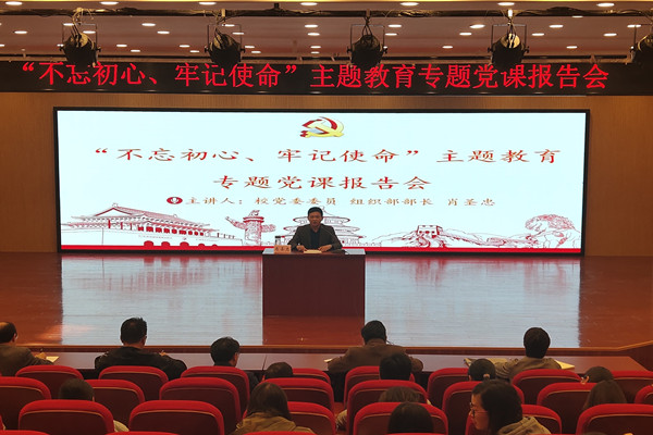 為深入學(xué)習(xí)和貫徹黨的十九大精神,根據(jù)“不忘初心、牢記使命”主題教育省委第十巡回指導(dǎo)組近期工作要求及學(xué)校主題教育相關(guān)工作安排, 10月30日下午,校黨委委員、組織部長肖圣忠在藝術(shù)樓音樂多功能報告廳,為藝術(shù)學(xué)院黨員師生主講題為“扎實推進(jìn)基層黨組織建設(shè),全面提升基層黨建工作質(zhì)量”主題教育專題黨課。藝術(shù)學(xué)院全體黨政領(lǐng)導(dǎo)帶領(lǐng)三個教工支部和三個學(xué)生支部的在校黨員師生聆聽了此次黨課。