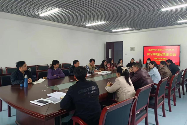 4月25日下午,教務處副處長胡傳雙、美術與設計學院副院長田世彬、美術學專業教師代國娟、潘池勇一行赴巢湖三中半湯校區開展師范生教育實習中期檢查工作。巢湖三中副校長錢維、教務處主任王歡及巢湖三中半湯校區實習指導教師出席會議,巢湖三中半湯校區實習生參加活動。