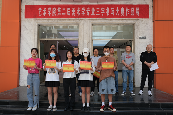 在大賽組委會充分發動和周密安排下,全體美術學專業(含中國書畫方向)同學踴躍參與、精心準備,共創作作品近四百幅。經大賽評審委員會評審,共評選出一等獎9名,二等獎23名,三等獎25名。開幕式上,學院領導為獲獎者頒發了證書。最后,在師生們熱烈的掌聲中,藝術學院第二屆美術學專業三字書寫大賽作品展正式開幕。開幕式后,與會領導、教師和同學們參觀了展覽。