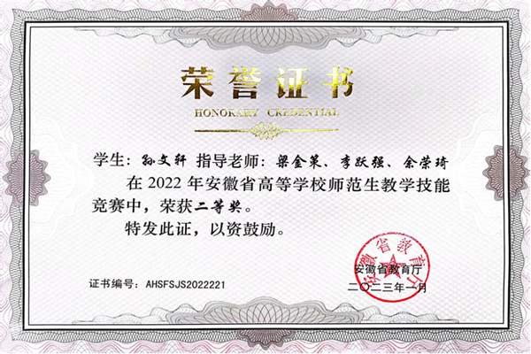 同時(shí),第十三屆安徽省高等學(xué)校師范生教學(xué)技能競賽成績也正式揭曉,該比賽由安徽省教育廳主辦,安徽師范大學(xué)承辦。在綜合組(美術(shù))的競技中,我院美術(shù)學(xué)專業(yè)孫文軒同學(xué)脫穎而出,榮獲二等獎。此外,美術(shù)學(xué)專業(yè)王一楨、池露、張文靜以及劉曉悅、丁茜、范祥雨兩組同學(xué)在教具組別中均獲得了三等獎,充分展示了我院師范生的技能水平。