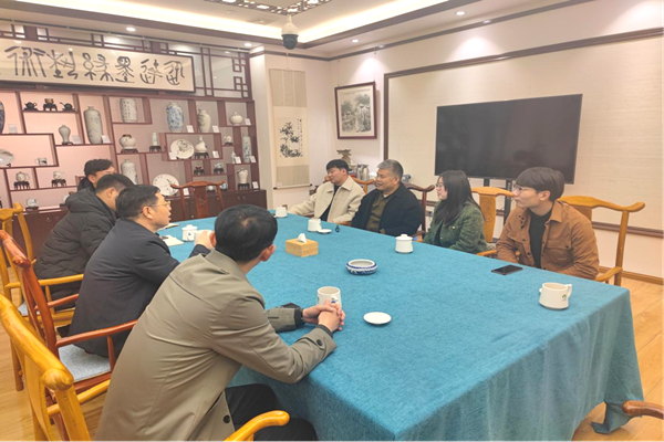 參觀結束后,雙方就陶藝實訓室建設、人才培養、實習就業等方面進行了座談交流。迅達文化集團董事長葛茂金為陶藝實訓室建設提出寶貴建議,并以企業需求為導向在專業人才培養方面提出需求。雙方達成共識今后將在陶瓷文創產品設計開發、中小學研學、實習就業等方面開展深入合作。(文/陳正凱 圖/徐婷 初審/李勇 終審/古國平 發布/陳建)