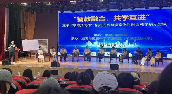 2024年5月10日,在巢湖市教育體育局指導組織下,巢湖市第三中學半湯校區(半湯實驗中學)與巢湖學院舉辦基于“學習共同體”模式的智慧課堂學科融合教學展示活動共建教研活動,在半湯校區報告廳進行。美術與設計學院副院長田世彬、美術學系主任席景霞、見習指導老師秦艷、劉靖宇、朱蓓蓓、2022級美術學專業全體學生,以及巢湖市部分中學美術教師代表共同參加此次活動。活動由巢湖市第三中學半湯校區美術教研組長胡演達老師策劃、巢湖市第三中學美術教研組長謝麗娟主持。