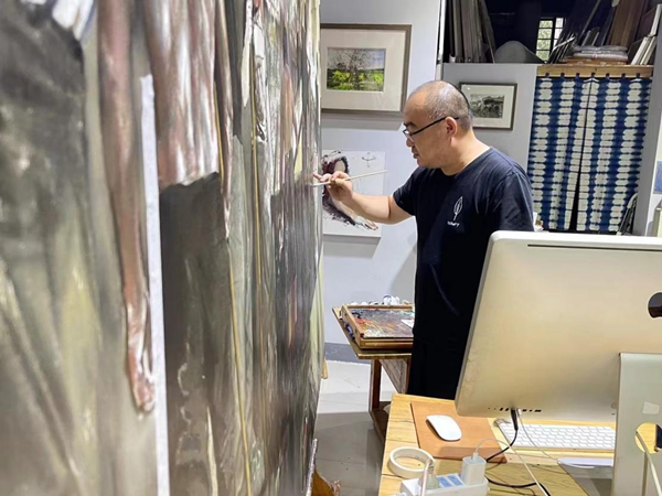 美術(shù)與設(shè)計學(xué)院高度重視第十四屆全國美展工作,經(jīng)學(xué)院積極動員和組織,多名教師踴躍參與全國美展的繪畫創(chuàng)作。孔慧老師近年來的繪畫創(chuàng)作一直致力于優(yōu)秀傳統(tǒng)文化的挖掘研究和視覺呈現(xiàn)。本次入選作品《傳承千年——宣紙制造》是通過深入生活、實地考察,以安徽涇縣特產(chǎn)宣紙為主題創(chuàng)作而成。宣紙享有“紙中之王,千年壽紙”的美譽(yù),其傳統(tǒng)制作技藝列入人類非物質(zhì)文化遺產(chǎn)代表作名錄。作品主要表現(xiàn)的是造紙師傅們撈紙的生產(chǎn)流程,凸顯了師傅們高超嫻熟的技藝,歌頌了大國工匠薪火相傳的精神。