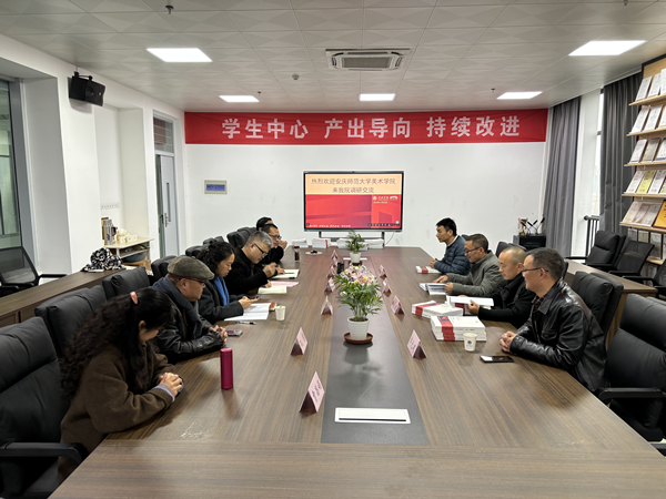 11月25日,安慶師范大學(xué)美術(shù)學(xué)院副院長(zhǎng)孫國(guó)良、油畫(huà)教研室主任向虎一行來(lái)我院就辦學(xué)情況、學(xué)科建設(shè)、師范專業(yè)認(rèn)證、課程建設(shè)、實(shí)踐教學(xué)等方面展開(kāi)調(diào)研交流。美術(shù)與設(shè)計(jì)學(xué)院副院長(zhǎng)李超峰、副院長(zhǎng)田世彬、美術(shù)系主任席景霞及教師代表參加活動(dòng),會(huì)議由田世彬主持。
