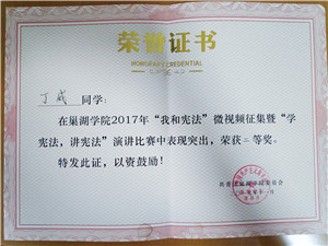 對于法學專業的學生來說,在提高自身專業知識的同時還需要多多參加法學專業類的比賽,全方位、多層次鞏固自身專業技能。因此大一大二時,她常常活躍于各類賽事,并在大學生模擬法庭比賽、大學生未來律師辯論賽中嶄露頭角,取得不俗的成績。“訓練一個半月,辛苦沒有白費,完美撒花!”“今天我們是最棒的,比賽加油!”在丁威的QQ空間中我們能看到很多鼓勵自己的話,“越努力,越幸運”在她身上是最好的詮釋。