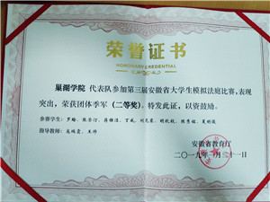 丁威,女,漢族,安徽宿州人,經濟與法學學院法學專業16級學生,中共黨員。在校期間,學習成績優異榮獲國家獎學金、國家勵志獎學金、專業一等獎學金,被評為巢湖學院“三好學生”。曾獲安徽省第五屆大學生未來律師辯論賽三等獎、安徽省第六屆大學生未來律師辯論賽優秀獎、巢湖學院第一屆經濟節之經濟文化辯論賽一等獎、巢湖學院第五屆未來律師辯論賽二等獎、巢湖學院第六屆未來律師辯論賽二等獎、巢湖學院第二屆模擬法庭大賽季軍、巢湖學院第六屆大學生辯論賽季軍等獎項。在2020年研究生入學考試中,考入西南政法大學經濟法專業。
